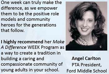 At the heart of Make A Difference WEEK is an “any one can do this” System that helps educators REACH, TEACH and call out the very best in every single student by giving them 1 class period a day for 5 consecutive days of skill development and practice USING the specific kind of social and emotional connection that gets them out of their heads and into their hearts in the ways that will have the greatest peer-to-peer impact.