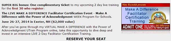 GIFT BONUS #2: For your investment in MDPA UTrain Program, you will receive 1 complementary Ticket to my Live Training in the Boston area (Exeter, NH – 1 hour N of Boston, MA – BOS airport or 50 min E of Manchester, NH – MHT airport).
