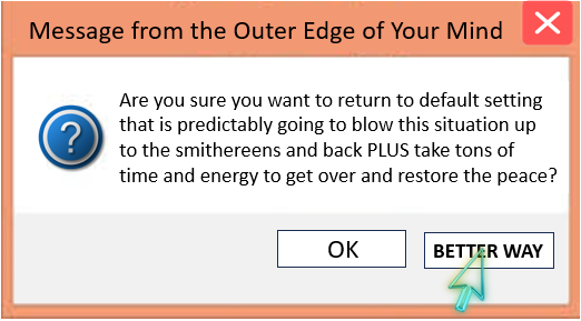 Hey there Difference Maker! Today’s TurnAround is … Change Your Default Adulting Settings Two things can be true at the same time: What is “default adulting”? It’s a term that I came up with – at least I think I was the one who came up with this – to refer to well intentioned parenting and teaching styles that inadvertently hurt rather than teach skills. It’s a way for me to talk about parenting and teaching, i.e., “adulting” styles that cover the full spectrum of possible styles, from authoritarian to authoritative to permissive to indulgent only without using that language. Why not just use that language? Because 1) it’s not a black-and-white thing, and 2) people often start to JREDD (Justify, Rationalize, Explain, Defend and Debate) and when defenses come up learning receptivity goes down. Default adulting can be anything that floods out of your mouth with no end in sight. Default adulting can be automatically yelling NO to something a kid is asking for because that’s what you got told when you asked for things that mattered to you. Default adulting may have worked short term, but has never actually worked (long term), never will work (long term) and doubling down and trying harder at it only defeats everything you are trying to accomplish if pain is used to teach rather than teaching skills in an energetically encouraging way. Default adulting most likely originates from what you learned to do from the adults in your world growing up. If you hear yourself think, “Well, it worked on me and I turned out alright” then chances are, even though you hated it as a kid, you are afraid that if you don’t use it in tough situations, you will either lose control or not be doing your job to teach the children in your care. It’s a simple litmus test: If you hated how you were taught and treated as a kid, simply be willing to be willing to find, and use better ways. Stop JREDDing. What you can do to start changing your default adult setting is to investigate, “Is there a better way?” Chances are, there is. It can be as simple as asking yourself if you would talk to your best friend the way you are talking to the child or spouse right now. FOR THE FUN OF IT: The next time you hear yourself saying something that you always hated being said to you as a kid, STOP YOURSELF RIGHT THERE! Make a mental note of this moment.